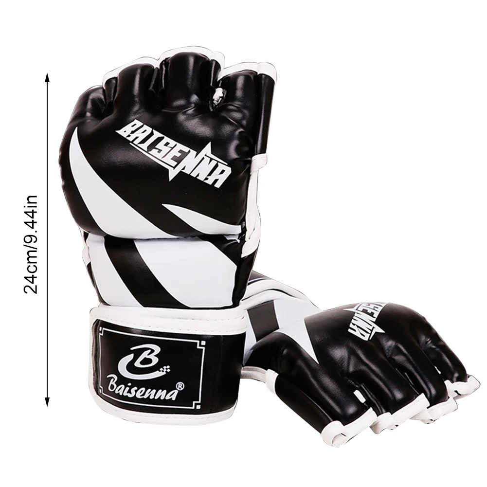 Unisex Boxing Gloves PU Leather 3cm Thickened Sparring Punching Gloves Adjustable Fingerless for Boxing Kickboxing Muay Thai MMA